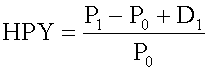 Since a pure discount instrument (e.g., a T-bill) makes no interest payment, its HPY is (P1 - P0)/P0.
