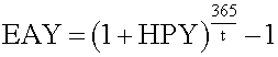 - rMM = [(1 + EAY)t/365 - 1] x (360/t)