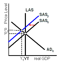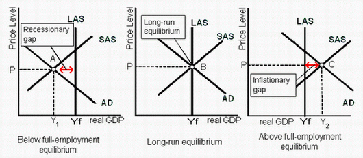 Long-run equilibrium thus occurs where LAS, AD, and SAS coincide.