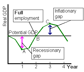 - An above full-employment equilibrium is an equilibrium in which real GDP exceeds potential GDP. The amount by which real GDP exceeds potential GDP is called an inflationary gap.