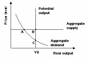 If potential output exceeds aggregate demand, eventually ______A. input prices will rise and output will fall.