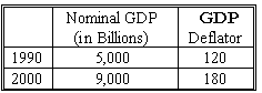 Given the following information, and measured in terms of 1990 prices, the real GDP in 2000 was ______.