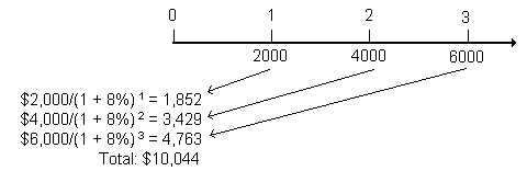 John wants to pay off his student loan in three annual installments: $2,000, $4,000 and $6,000, respectively, in the next three years. How much should John deposit into his bank account today if he wants to use the account balance to pay off the loan? Assume that the bank pays 8% interest, compounded annually.