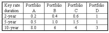 Which of the following portfolios would lose the least from a parallel shift up of 10 basis points in the yield curve?