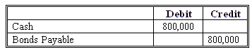 If $800,000 of bonds were issued on January 1, 2015 at 100, the issuance would be recorded as follows: